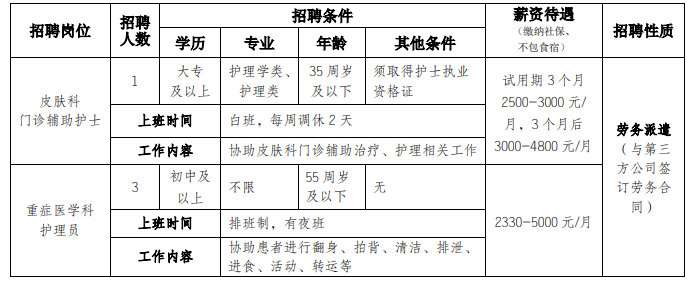 原標(biāo)題:重慶大學(xué)附屬江津醫(yī)院招聘啟事 (皮膚科門診輔助護(hù)士+重癥醫(yī)學(xué)科護(hù)理員)