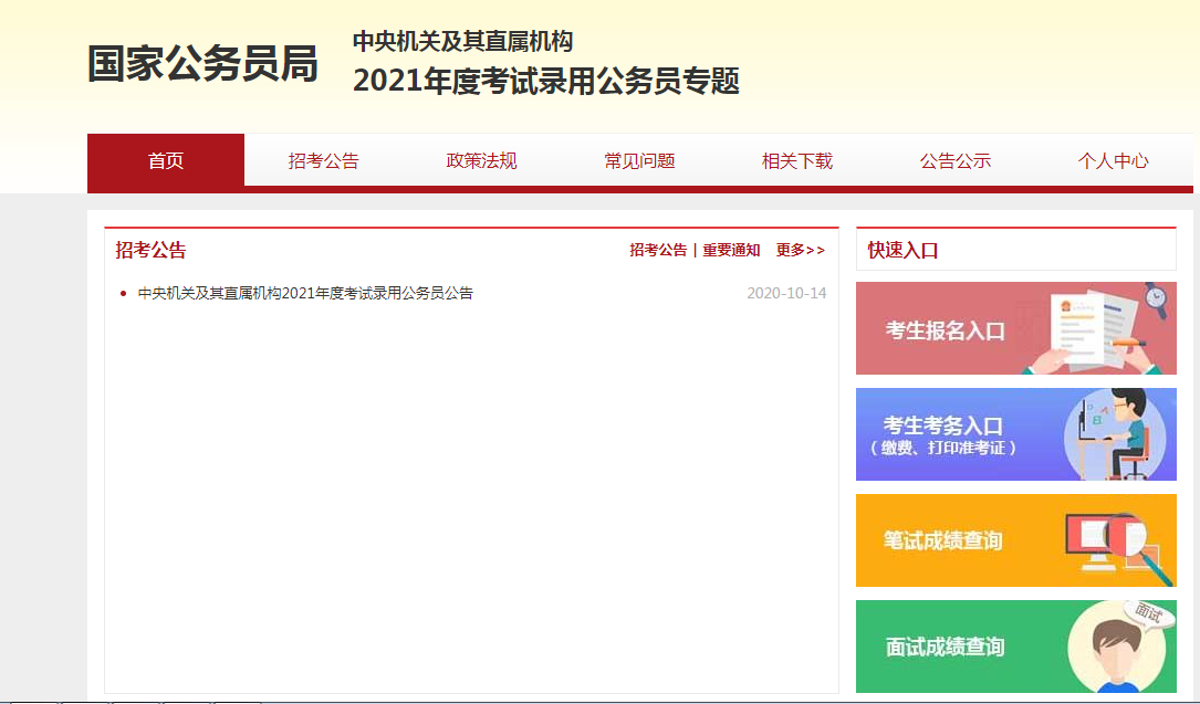 2021年國家公務員考試報名入口
